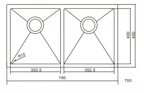 Størrelse: 780*450*200mm Materiale: SUS304 Tykkelse: 3+1,0 mm